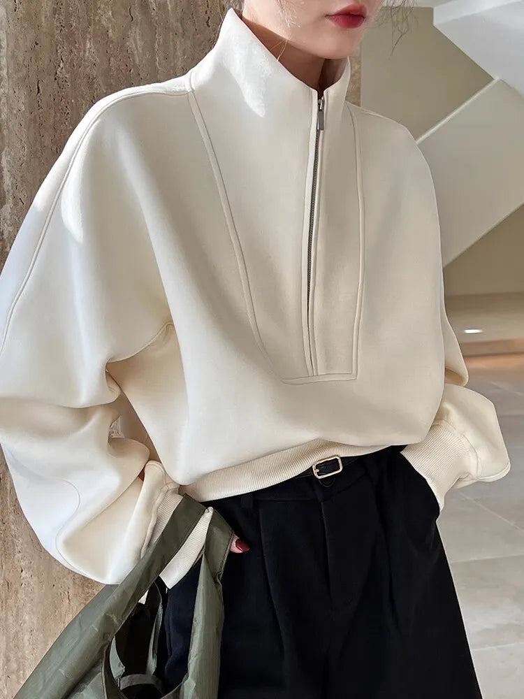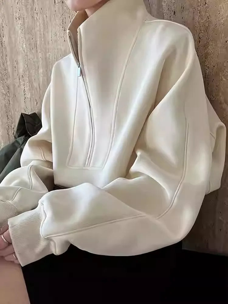 ジップの隣に斜めに入るラインでスッキリとしたシルエットに