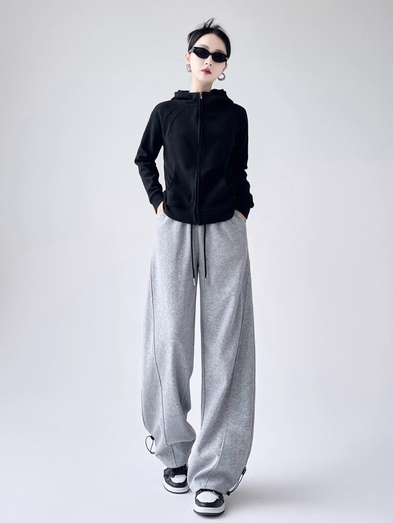 裾にかけて斜めに広がっているデザインのバギーパンツシルエット