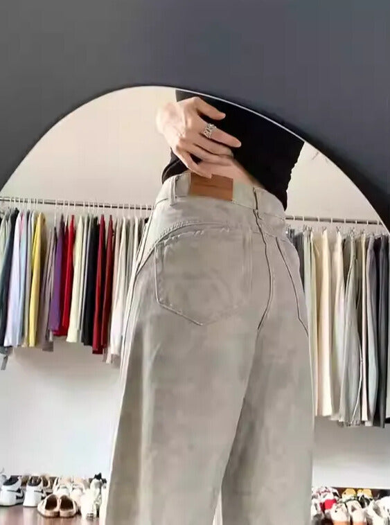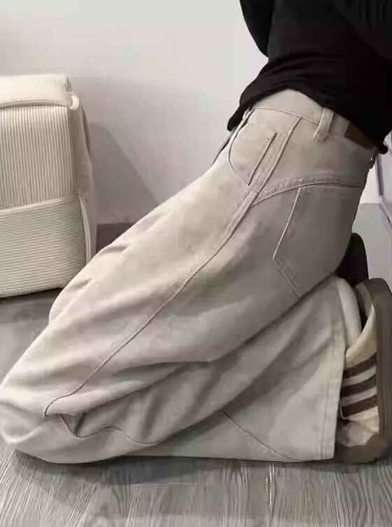 後ろのポケットラインと裾にかけて入ってるラインが綺麗にゆるっと着こなせるデザインに