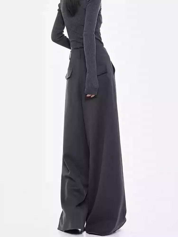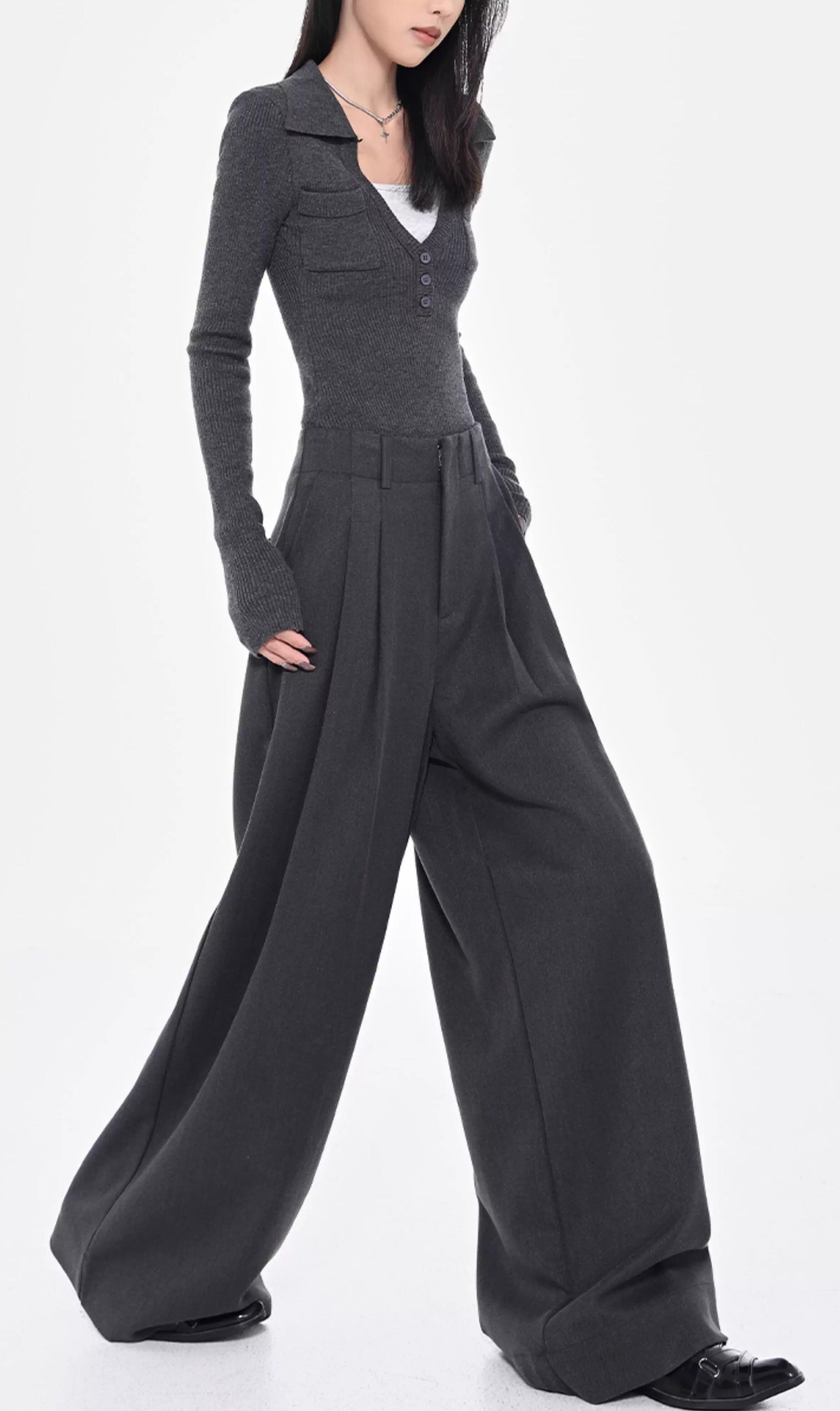 タックが2本入ってて、裾にかけて広がっているデザインのスラックス