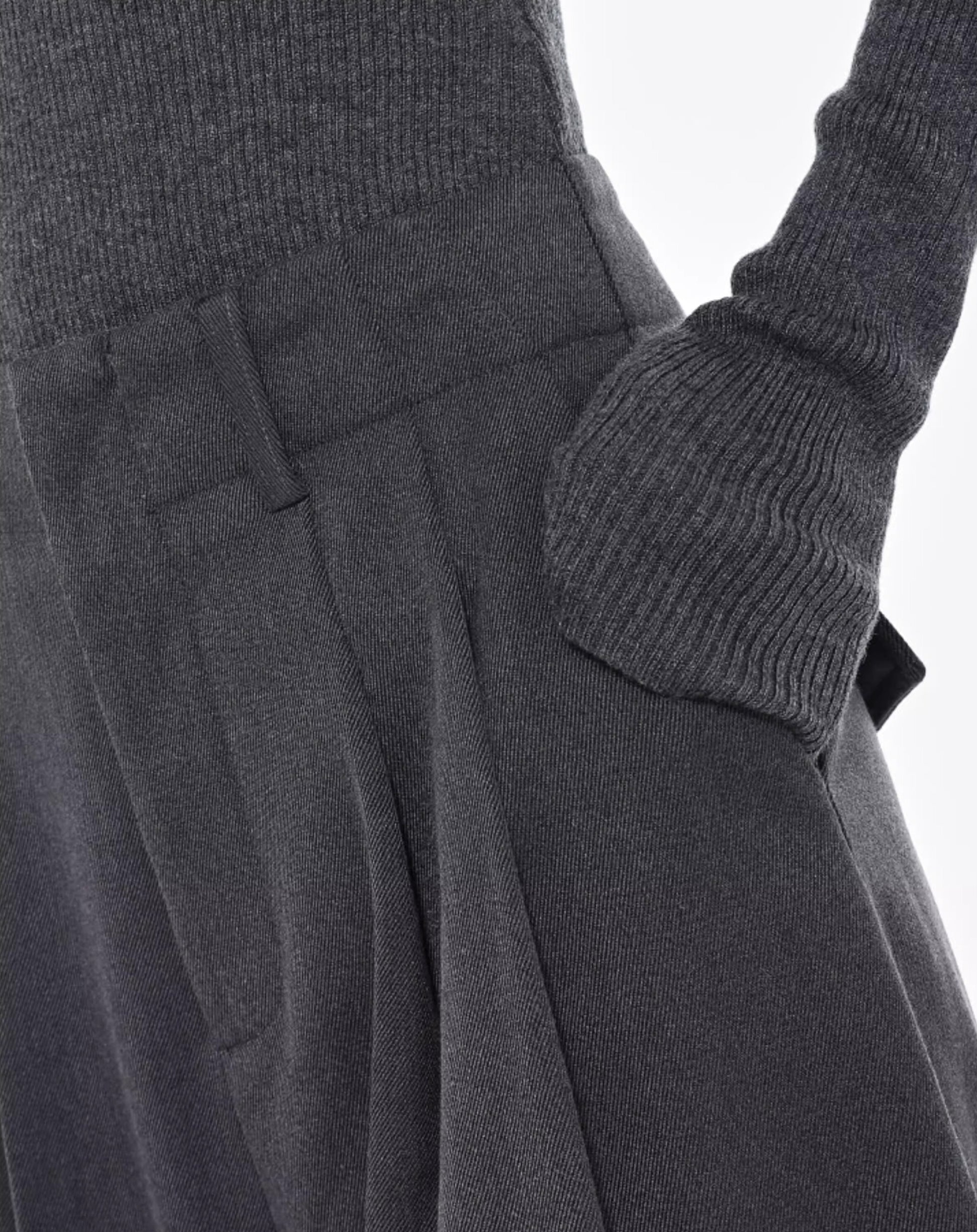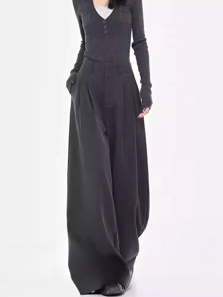 ワイドパンツでしっかり下に落ちるシルエットでスタイルアップ効果
