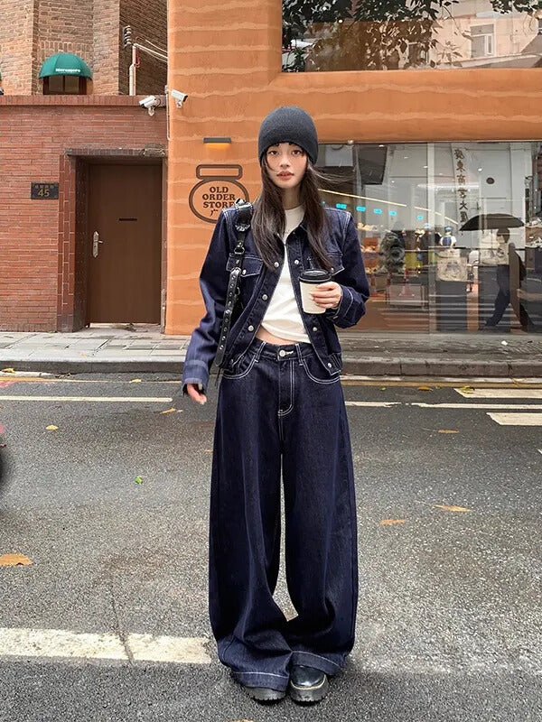 ダークブルーショートデニムジャケット(セットアップ上)